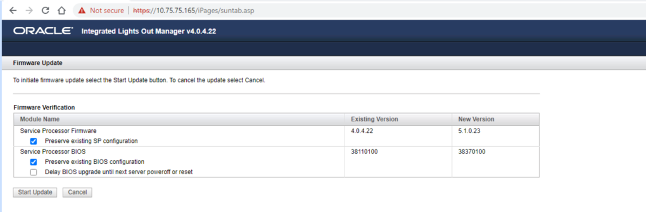 Checking Ilom patch Version Success Successfully verified the versions
