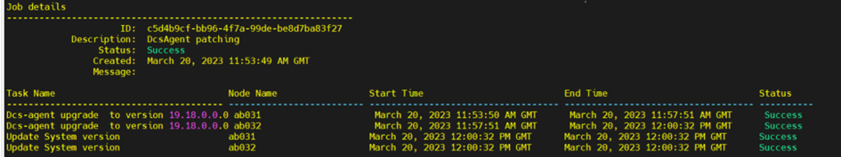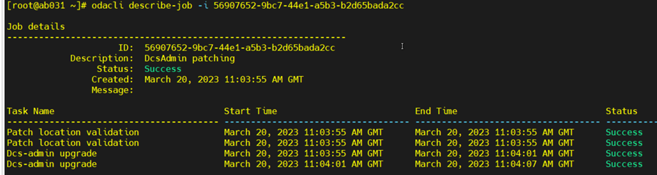 [root@ab031 ~]# odacli describe-job -i f2df0fd1-7304-4090-ad7e-6d3a3773e224