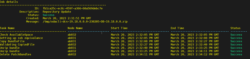 #odacli update-repository -f /tmp/odacli-dcs-19.18.0.0.0-230205-DB-19.18.0.0.zip