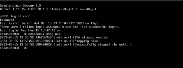 #odaadmcli stop oak