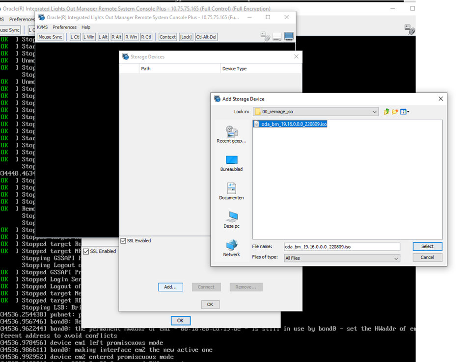 Ga naar het iso bestand: F:\3. afdelingen\service\DBA\ODA\ODA-19.16\00_reimage_iso\oda_bm_19.16.0.0.0_220809.iso