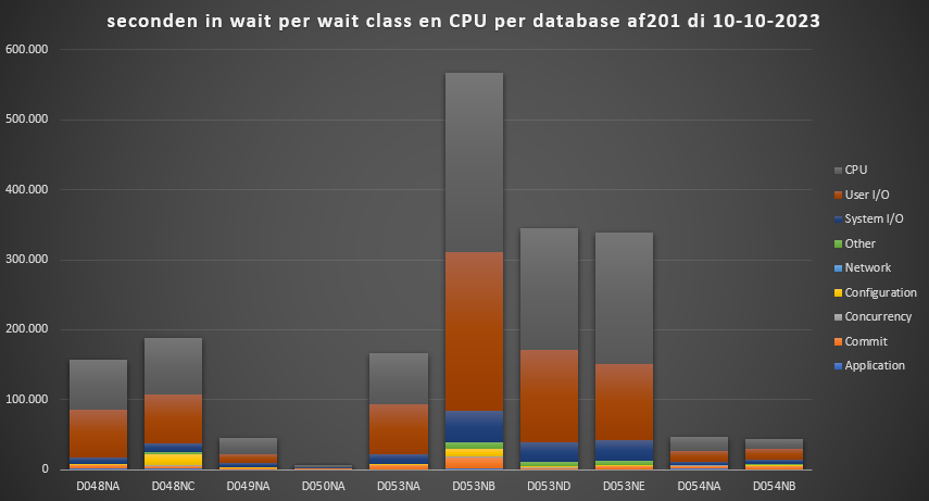 Dit artikel beschrijft de manier die gebruikt wordt om voor alle NIET PRD databases een overzicht te krijgen van de tijd in seconden per dag besteedt aan wachten t.o.v. seconden dat de database gebruik kan maken van CPU kracht. PRD omgevingen hebben op dit moment geen ‘last’ van grote hoeveelheden wait events maar als dit in de toekomst wel het geval wordt kan dezelfde werkwijze op PRD omgevingen gebruikt worden.
