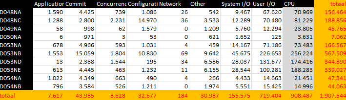 Dit is samengebracht in een Excel per databaseserve. Een voorbeeld van deze Excel is te downloaden via link: /waits/af201_all_db_waits.xlsx